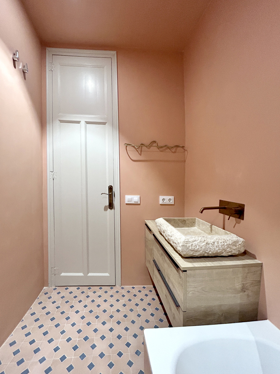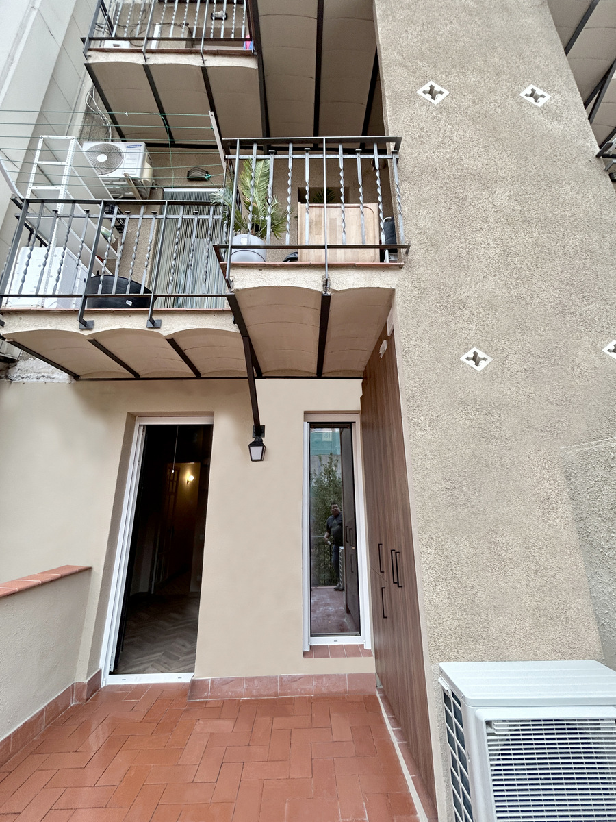 This project was unique because it involved an unconventional addition to the building’s rear patio, which my clients wanted to remove to restore the original volume and the original terrace. To achieve this, permission was obtained from the homeowners’ association, and the affected area of the rear patio/façade was renovated to integrate it as seamlessly as possible into its surroundings.